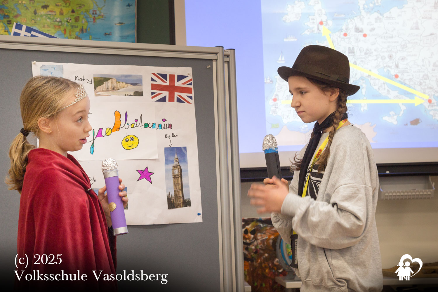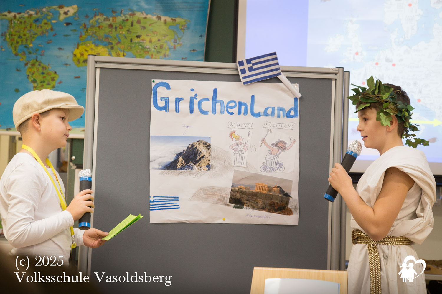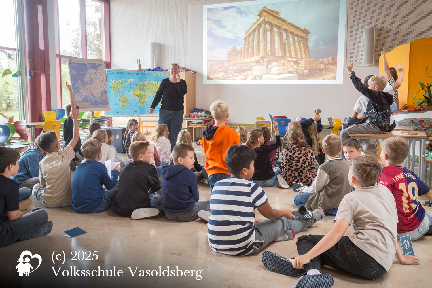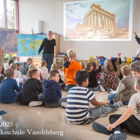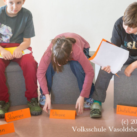 Doch – Halt, Stopp! Wir sind nicht in Athen vor 2500 Jahren, sondern in unserer Aula bei der Impulsdebatte zu unserem Europaprojekt der 4. Klassen.