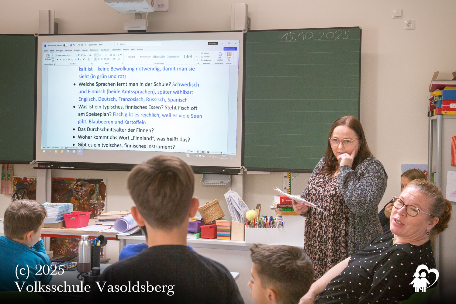 Da fügte es sich besonders gut, dass uns in dieser Zeit eine Lehrerin aus Finnland besuchte. Sie war von der Idee, die Fragen der Kinder zu ihrem Land zu beantworten, sofort begeistert.