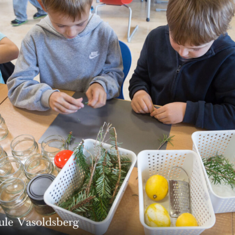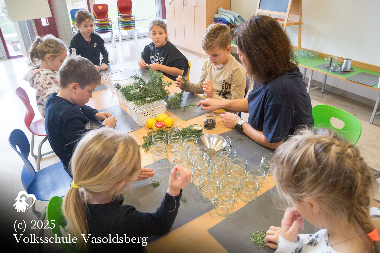 Die Waldpädagoginnen Michaela Friebes und Andrea Joham organisierten für alle acht Klassen einen Kräuterworkshop.